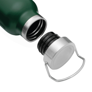 Artikel-Nr: INP56-0304532Edelstahl-Isolierflasche MILITARY, Vakuum-Kupfer isoliert: doppelwandig, innen und außen aus Edelstahl, silberner Deckel mit Schraubverschluss, Silikon-Dichtring und Tragegiff, Füllmenge ca. 650 ml, hält ca. 12 Stunden warm und bis zu 24 Stunden kalt, in Box