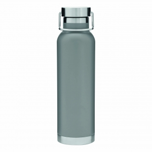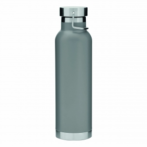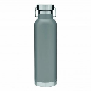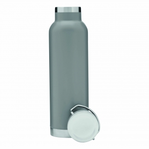 Artikel-Nr: INP56-0304531Vakuum-Isolierflasche MILITARY, doppelwandig: mit Kupfer-Isolierung, innen und außen aus Edelstahl, silberner Deckel mit Schraubverschluss, Silikon-Dichtring und Tragegiff, Füllmenge ca. 650 ml, hält ca. 12 Stunden warm und bis zu 24 Stunden kalt, in Box