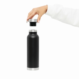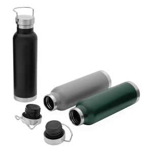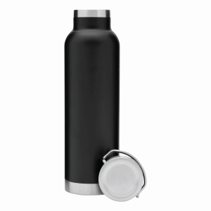 Artikel-Nr: INP56-0304530Edelstahl-Isolierflasche MILITARY, Vakuum-Kupfer isoliert: doppelwandig, innen und außen aus Edelstahl, silberner Deckel mit Schraubverschluss, Silikon-Dichtring und Tragegiff, Füllmenge ca. 650 ml, hält ca. 12 Stunden warm und bis zu 24 Stunden kalt, in Box