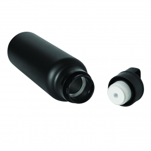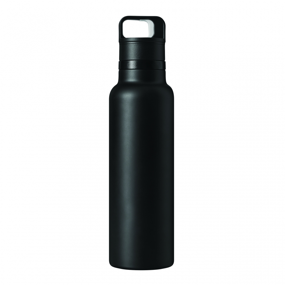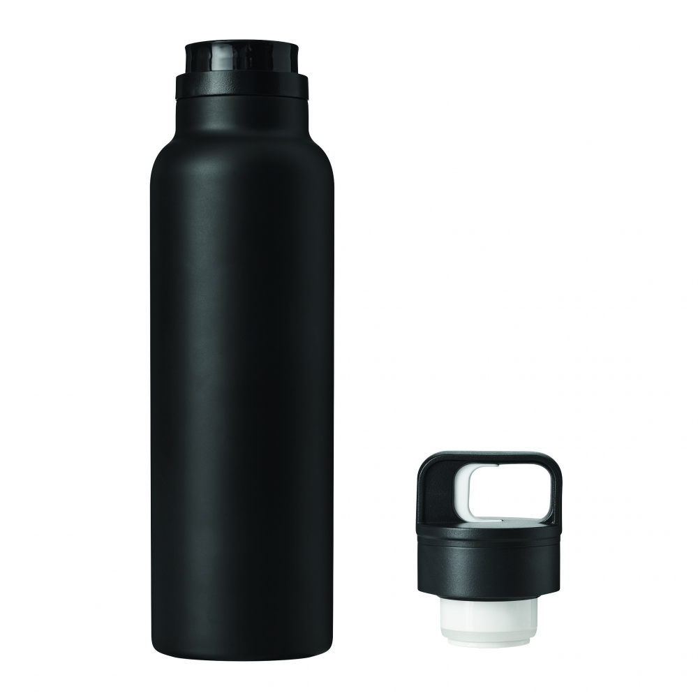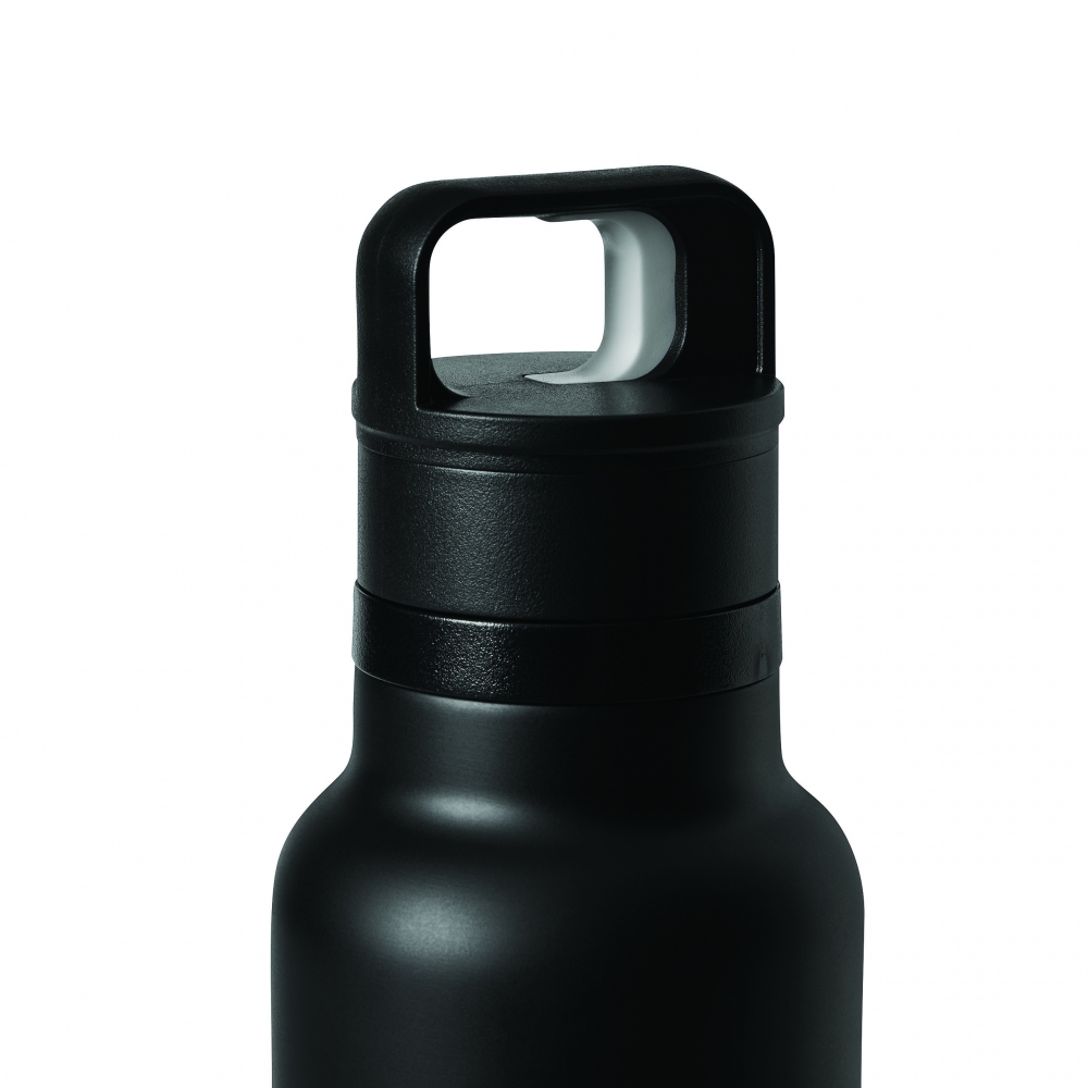 Artikel-Nr: INP56-0304699Vakuum-Isolierflasche TRAVELCLICK, doppelwandig: innen und außen aus Edelstahl, schwarzer Kunststoff-Deckel mit Einhand-Klickverschluss, Silikon-Dichtring und Tragegriff, Füllmenge ca. 750 ml, hält ca. 8 Stunden warm und bis zu 12 Stunden kalt, in Box