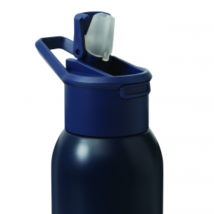 Artikel-Nr: INP56-0304810Vakuum-Isolierflasche TREKSTEEL, doppelwandig: innen und außen aus Edelstahl, farblich passender Kunststoff-Deckel mit sicherem Schraubverschluss, Silikon-Dichtring und Tragegriff, einhändig zu öffnender Flip-Top-Deckel, integrierter Edelstahl-Trinkhalm mit weichem Silikonmundstück, Füllmenge ca. 600 ml, hält ca. 8 Stunden warm und bis zu 12 Stunden kalt, in Box