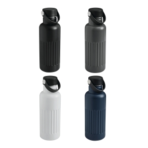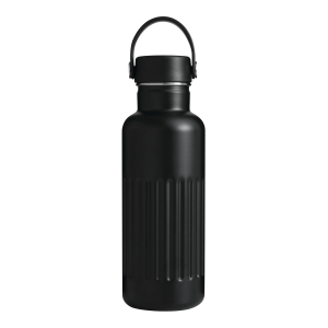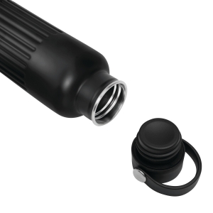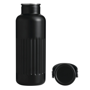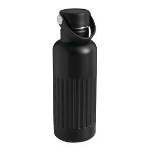 Artikel-Nr: INP56-0304717Vakuum-Isolierflasche WAVE TRAIL, doppelwandig: innen aus recyceltem Edelstahl und außen aus Edelstahl, schwarzer Kunststoff-Deckel mit sicherem Schraubverschluss, Silikon-Dichtring und Kunststoff-Trageschlaufe, Füllmenge ca. 500 ml, hält ca. 8 Stunden warm und bis zu 12 Stunden kalt, in Box
