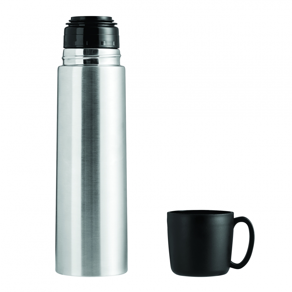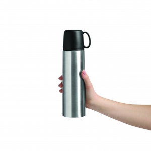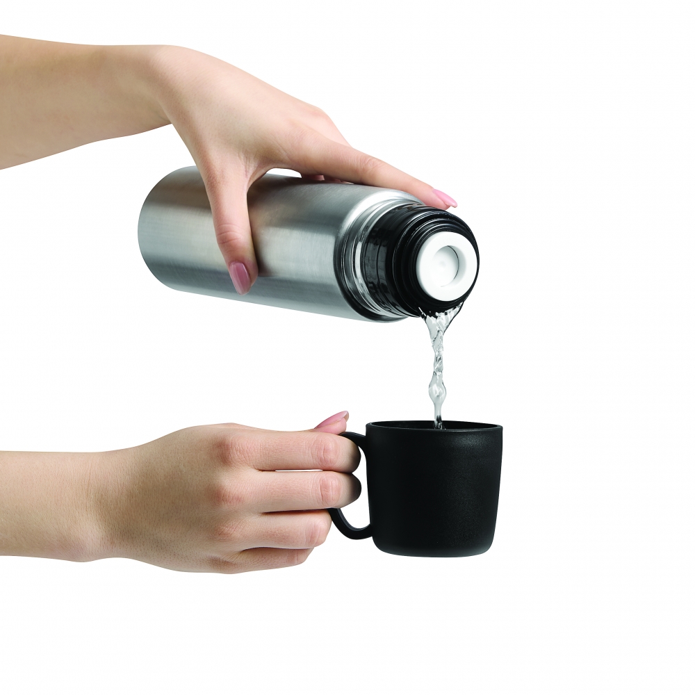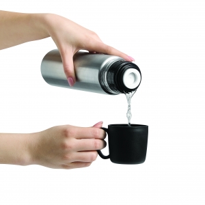 Artikel-Nr: INP56-0304205Vakuum-Isolierkanne STEAMSIP, doppelwandig: innen und außen aus Edelstahl, Deckel mit sicherem Schraubverschluss und Griff (als Becher verwendbar), Kunststoff-Ausgießer mit Schnellverschluss, Schraubgewinde und Silikon-Dichtring, Füllmenge ca. 500 ml, hält ca. 8 Stunden warm und bis zu 12 Stunden kalt, in Box