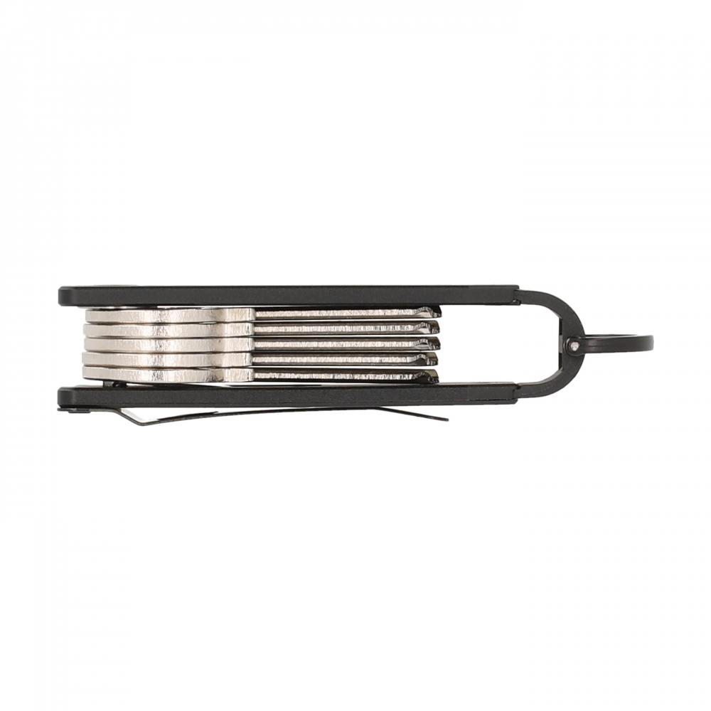 Artikel-Nr: CLP263505-001Der Schlüsselhalter Aluminium der Marke Valenta ist eine nachhaltige und kompakte Lösung, um Schlüssel organisiert und geräuschlos aufzubewahren. Dieser aus robustem Aluminium gefertigte Organizer bietet Platz für bis zu 6 Schlüssel und verhindert das Klappern herkömmlicher Schlüsselanhänger. Der D-förmige Schlüsselring erleichtert das Befestigen von Autoschlüsseln oder Fernbedienungen, während der abnehmbare Metallclip einen bequemen Transport ermöglicht oder für ein schlankeres Profil entfernt werden kann. Eine eingebaute Feder hält die Schlüssel sicher an ihrem Platz und die Aussparung an der Vorderseite sorgt für einen einfachen Zugriff. Wird mit Ersatz-Sechskantschlüssel und Schrauben für eine einfache Montage und Einstellung geliefert.
