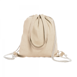 Artikel-Nr: PRM250091_20Rucksacktasche mit Kordelzug aus 100 % 140 g / m² recycelter Baumwolle in meliertem Finish, mit 70 cm langen, passenden Griffen und Schnüren in Naturfarbe.