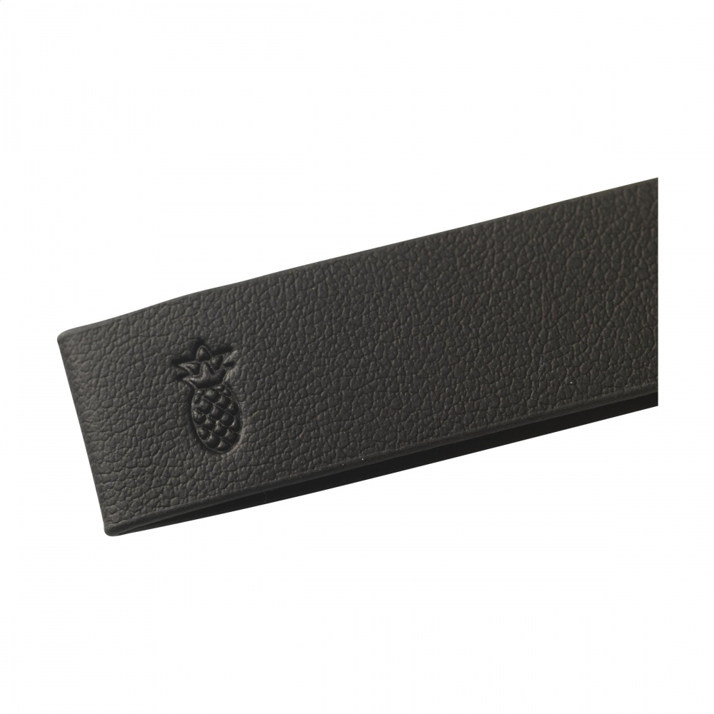 Artikel-Nr: CLP261286-001Schlüsselanhänger gefertigt aus aus Ananas-veganem-Kunstleder. Befestigt an einem stabilen Metallschlüsselring. Das vegane Kunstleder ist von echtem Leder kaum zu unterscheiden. Allerdings besteht das Material aus Ananasblättern, einem Restprodukt aus dem Ananasanbau. Aus diesem Grund werden für die Herstellung keine zusätzlichen Stoffe wie Wasser, Dünger oder Pestizide benötigt. Die Fasern der Ananasblätter werden gewaschen, mit PU angereichert und im Ofen getrocknet. Das Ergebnis? Geschmeidige Laken aus veganem Kunstleder, die anschließend mit einem schönen Finish versehen werden. Nach dem Trocknen entsteht ein weiches und attraktives Material mit den Eigenschaften von Leder. Es besteht teilweise aus Fruchtresten und teilweise aus PU.