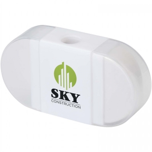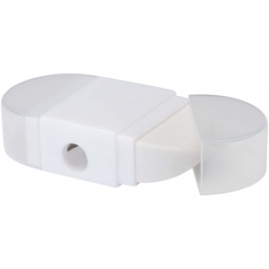 Artikel-Nr: CPO10798701Bleistiftspitzer mit Radiergummi mit durchsichtigen Kappen auf beiden Seiten. Größe 6,2 x 3,3 x 1,6 cm.
