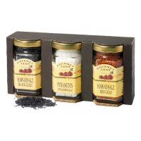 Artikel-Nr: 7980280Fernab der Ozean-Handelsrouten und aus Gebirgen, die das Salz der Urmeere schützen, werden diese Salze gewonnen. Nur hier kann man die höchstmögliche Reinheit finden. So hat jedes dieser Salze eine eigene Geschichte. Präsent besteht aus 1 Glas Hawaii-Salz black gold, 110g, 1 Glas Pyramiden-Fingersalz, weiß 60g, hauchdünne Salzpyramiden aus weißem Salz des Mittelmeeres, 1 Glas Hawaii-Salz red gold, 110g. Alle Salze ohne Farb- oder Konservierungsstoffen im Umkarton bruchsicher und versandfertig verpackt.