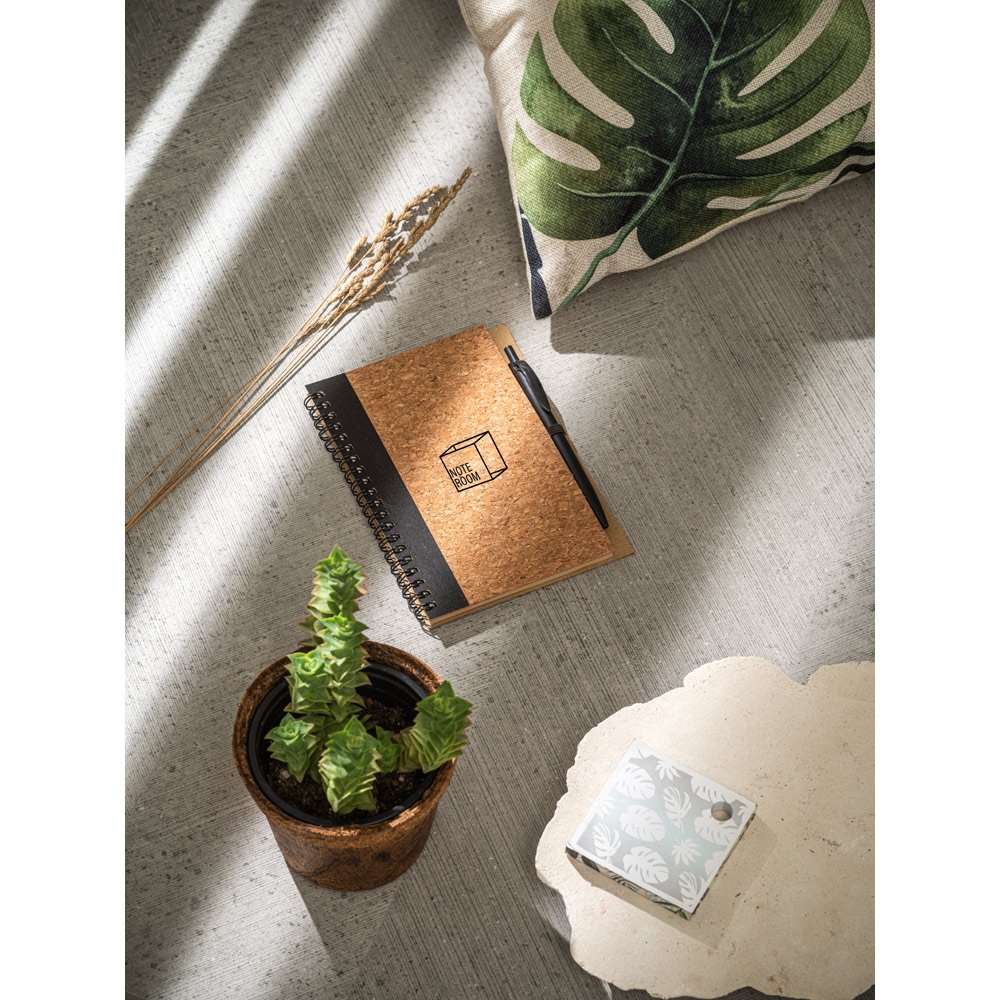 VICENTE B6-Notizbuch aus Kork und Recyceltes Polyester (100% rPET) mit Kugelschreiber