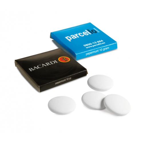 Farbe: weiß Maße: 0,6 x 4,7 x 4,7 cm Material: allover bedrukt Füllmenge: 4 Imperial Pfefferminz