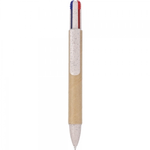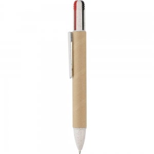 Artikel-Nr: GIV1171446018119Vierfarbiger Kugelschreiber aus recyceltem Karton und Weizenstroh. Ca. 300 Meter Schreiblänge pro Farbe. Minenfarben: blau, schwarz, rot und grün.