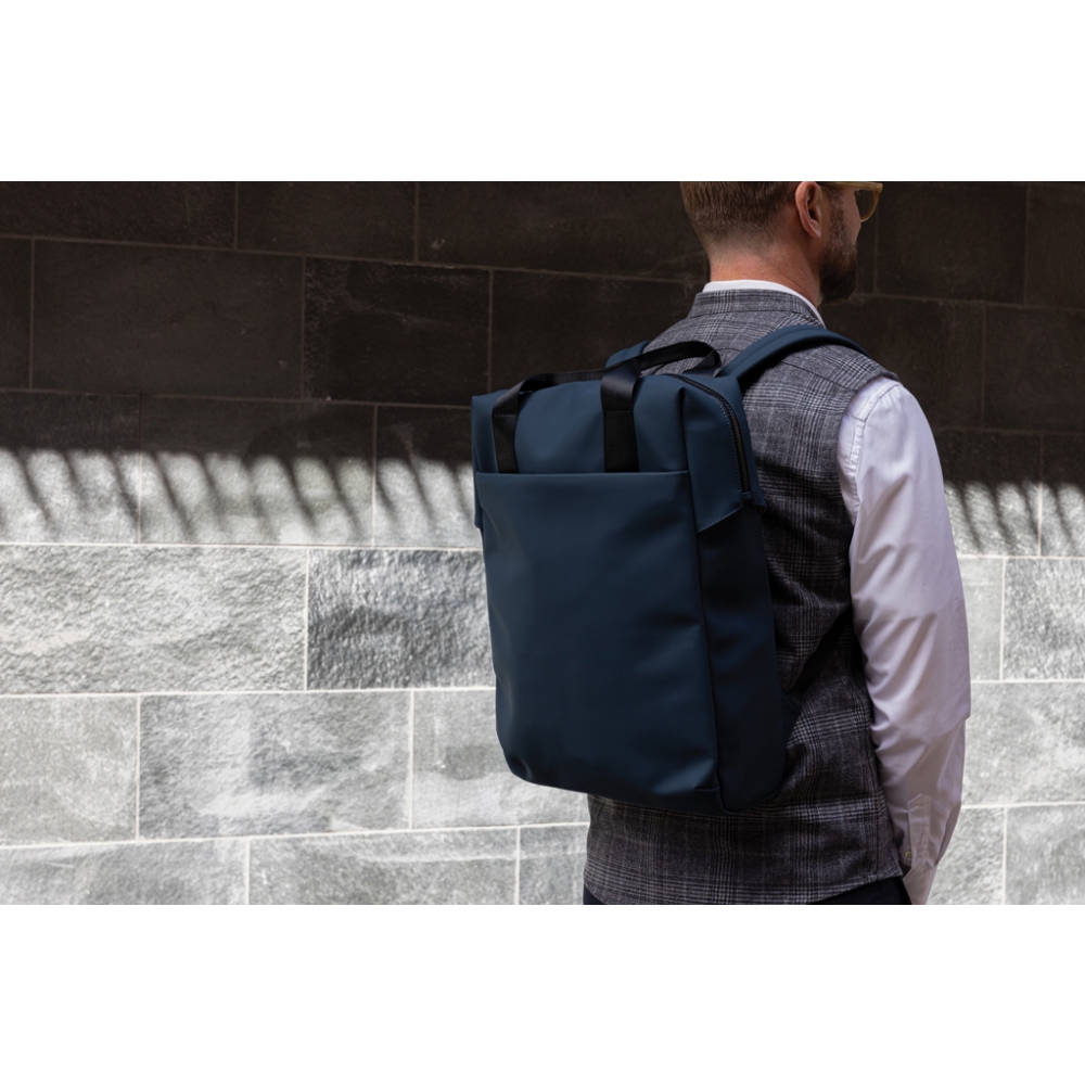 Artikel-Nr: XNDV7050025Eine handliche Tasche mit schlankem Design. Kann als Tragetasche oder Rucksack getragen werden. Die Tasche verfügt über eine breite Reißverschlussöffnung zum bequemen Verstauen Ihres Laptops und anderer Wertsachen. Ein Riemen auf der Rückseite ermöglicht das Befestigen an einem Trolley für komfortables Reisen. Außerdem verfügt sie über eine große Fronttasche, eine Innentasche und einen praktischen Flaschenhalter. Zertifiziert nach RCS (Recycled Claim Standard), garantiert diese RCS-Zertifizierung, dass die gesamte Lieferkette der recycelten Materialien zertifiziert ist. Der Gesamtanteil an recyceltem Material basiert auf dem Gesamtgewicht des Produkts. Dieses Produkt enthält 19% RCS-zertifiziert recyceltes Polyester.