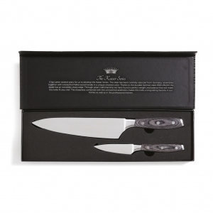 Artikel-Nr: XND1655Set van koksmen en schilmes. Exklusives Kochmesser aus der Kaiser Serie. Die Entwicklung dieser Messerserie hat mehrere Jahre gedauert. Der X50CrMoV15 Stahl ist sorgfältig aus Deutschland ausgewählt, der Griff ist aus Pakkaholz. Der Griff ist leicht zu greifen, was zusammen mit seinem ausgewogenen Körper das Arbeiten komfortabler und einfacher macht. Die guten Eigenschaften des deutschen Stahls führen dazu, dass die Klingen schmutzabweisend sind und keinen höheren Wartungsaufwand als Schleifen erfordern. Seine Schärfe hält lange an und wenn Sie es schleifen müssen, ist es eine einfache Aufgabe.