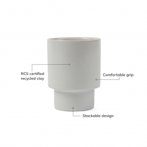 Artikel-Nr: XNDV4340203Die Nagano Pure Tasse, die teilweise aus recyceltem Ton hergestellt wurde, verbindet Schlichtheit mit einem modernen Twist und verkörpert die Essenz des skandinavischen Designs. Das stapelbare Design sorgt für eine effiziente Nutzung des Platzes und macht sie zu einer praktischen Ergänzung für jede Küche. Mit einem komfortablen Griff, der perfekt in der Hand liegt. Die RCS- (Recycled Claim Standard) Zertifizierung garantiert, dass die gesamte Lieferkette der recycelten Materialien zertifiziert ist. Der Gesamtanteil an recyceltem Material basiert auf dem Gesamtgewicht des Produkts. Dieses Produkt enthält 10% RCS-zertifiziert recycelten Ton. Nur Handwäsche. Fassungsvermögen: 250ml