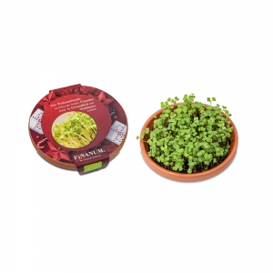 Artikel-Nr: HOP12.30024.00-saIn einer Welt voller Stress und Hektik ist es wichtiger denn je, sich um seine Gesundheit zu kümmern. Superfoods, reich an lebenswichtigen Vitaminen und Mineralstoffen, spielen dabei eine entscheidende Rolle. Diese Nährstoffbomben stärken das Immunsystem, fördern die Vitalität und unterstützen ein gesundes Leben. Unsere Vitaminschale bietet eine einfache Möglichkeit, Superfoods in Bio-Qualität Zuhause anzubauen und täglich eine Extraportion Gesundheit zu genießen. Die Schale ist aus hochwertigem Terrakotta mit 11 cm Durchmesser. Geliefert wird eine Substrattablette und Bio-Samen, der für mehr als einen Pflanzvorgang reicht. Zur Auswahl stehen die Samensorten Salatrauke, Rettich China Rose, Radies Sango und Kresse. Die individuelle Banderole bietet eine große Werbefläche.