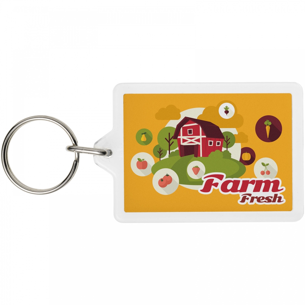 Artikel-Nr: CPO21056100Transparenter, rechteckiger C1-Schlüsselanhänger mit metallenem Schlüsselring. Der Metallring bietet ein flaches Profil, das sich ideal für Mailings eignet. Abmessungen der Druckeinlage: 5,0 cm x 3,5 cm.