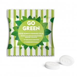 Artikel-Nr: MGN03002-00192 zuckerfreie Vivil Friendship Pfefferminz verpackt im individuell bedruckten Werbetütchen.