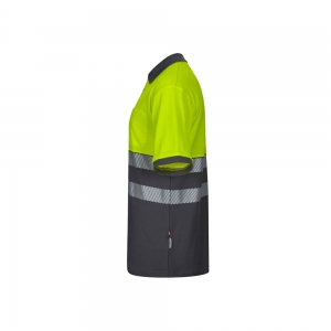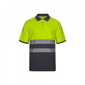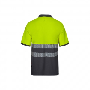 Artikel-Nr: PST36100-207-3XLZweifarbiges Piqué-Poloshirt (150g / m²) mit kurzen Ärmeln, aus Baumwolle (55%) und Polyester (45%). Knöpfe, gerippter Kragen und Saum in Kontrastfarbe. Segmentierte reflektierende Streifen auf dem Oberkörper. Enthält eine Brusttasche. Produkt gemäß EU-Verordnung 2016/425, zertifiziert nach EN20471 und Klasse Nº 1. Größe: S, M, L, XL, 2XL, 3XL