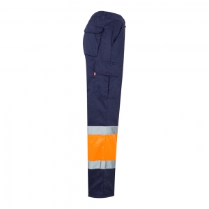 Artikel-Nr: PST36052-214-XLZweifarbige Twill-Hose (210 g / m²), gefüttert, mit mehreren Taschen, aus Baumwolle (20%) und Polyester (80%). Mit elastischem Bund, mit reflektierenden Streifen an der Unterseite der Hose. Enthält sechs Taschen (2 französische Taschen, 2 seitliche Balgtaschen und 2 Gesäßtaschen). Produkt gemäß EU-Verordnung 2016/425, zertifiziert nach EN20471 und Klasse Nº 1. Größe: S, M, L, XL, 2XL, 3XL