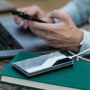 Artikel-Nr: ADCAPW001-103Voltix Powerbank mit 10.000 mAh und futuristisch-schlankem Design aus recyceltem ABS. Ausgestattet mit zwei USB-A- und einem USB-C-Anschluss lädt sie Ihre Geräte schnell auf und kann Ihr Smartphone 4 bis 5 Mal mit einer einzigen Ladung wieder aufladen, so bleiben Sie immer verbunden. Mit einer maximalen Ausgangsleistung von 18 W und einem integrierten LCD-Display, das Ihnen auf einen Blick den verbleibenden Ladestand anzeigt. Wird einzeln in einem Kraftkarton verpackt.