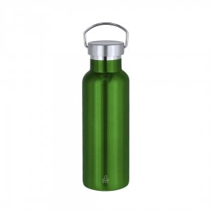 Artikel-Nr: KTO21991004000Isolierflasche aus doppelwandigem recyceltem Edelstahl mit 500 ml Fassungsvermögen. Mit lebendigen Farben und Metallic-Effekt. Schraubverschluss mit Tragegriff. Mit Emblem aus recyceltem Edelstahl. Stahl ist eines der gefragtesten Materialien und findet sich nahezu überall, von Alltagsprodukten bis hin zu großen Bauwerken. Mit zahlreichen Eigenschaften, insbesondere seiner Langlebigkeit und dem hohen Maß an Wiederverwendbarkeit, ist er eine sehr geschätzte Alternative für nachhaltige Lösungen. Richtig behandelt, ermöglicht er die Gewinnung neuer Ressourcen mit unendlicher Nutzung.
