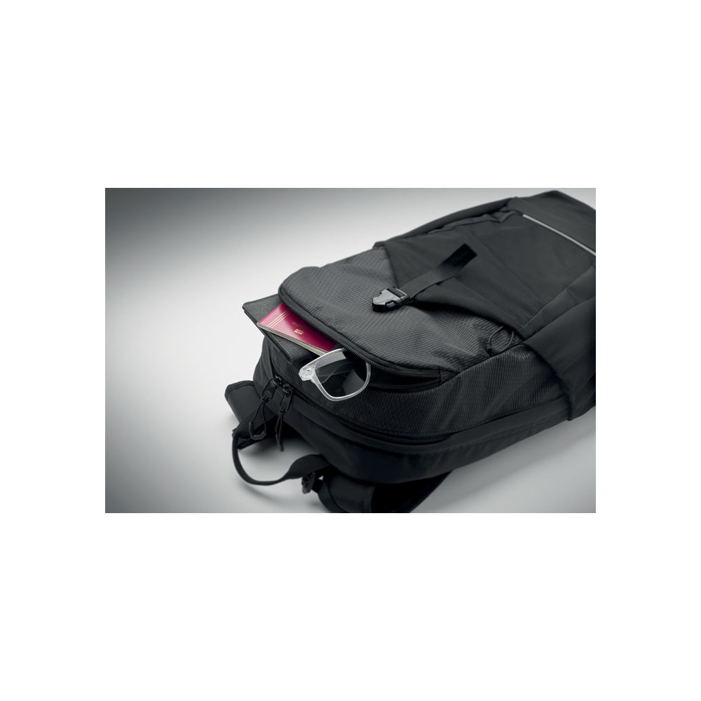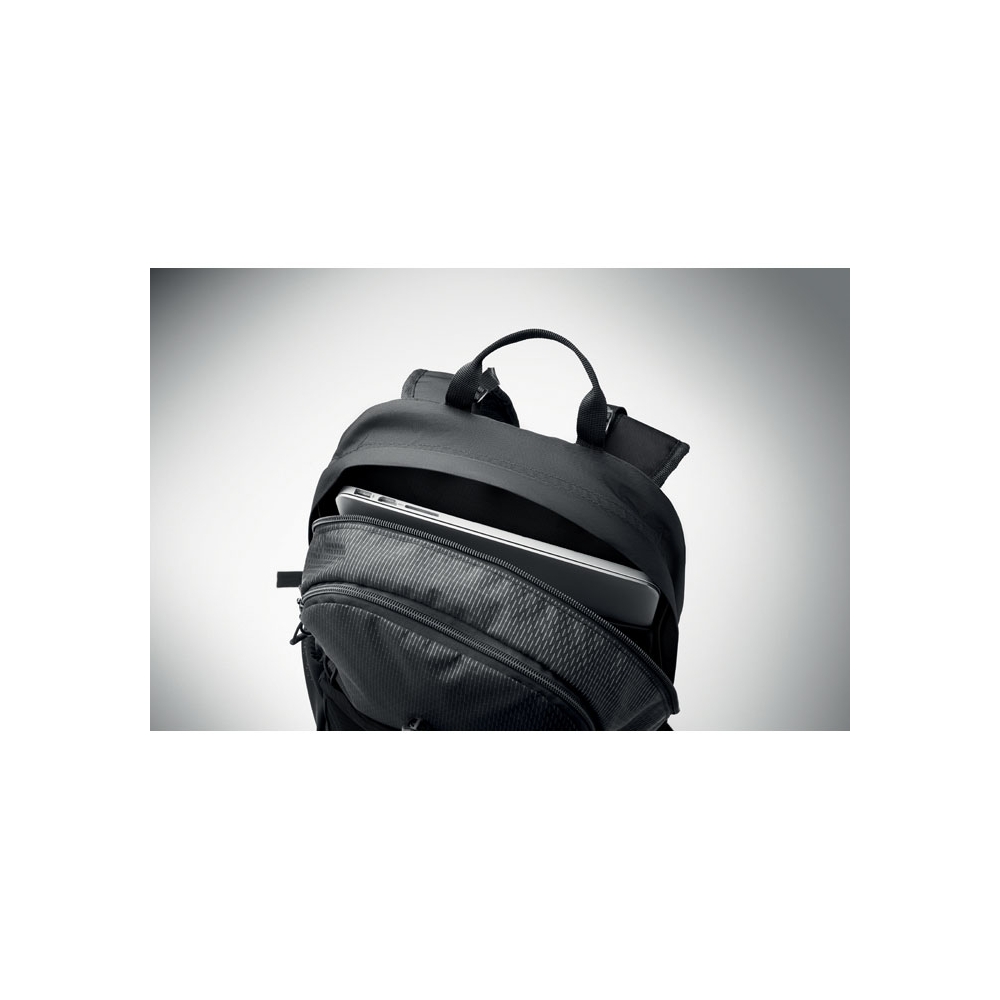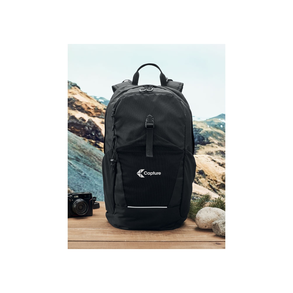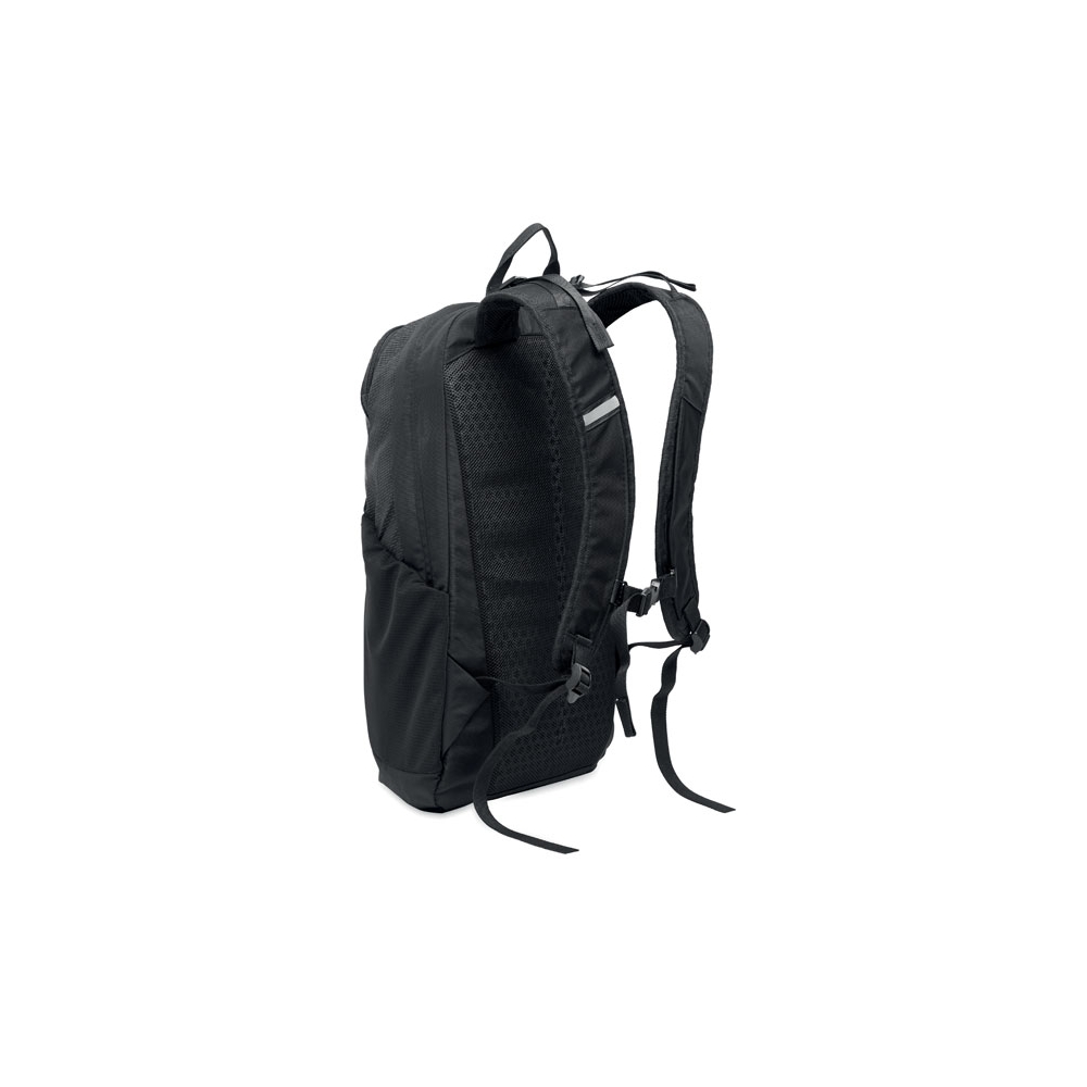 Artikel-Nr: OCBMO2372-03Wander-Rucksack 18L aus wasserabweisendem 420D Nylon mit Reflektorstreifen und 15'''' Laptop-Fach. Reißverschlussfach und Einschubtasche mit Schnallenverschluss auf der Front. Zwei seitliche Einschubtaschen. Gepolsterter Rücken und Schultergurte. Belüfte Rückseite.