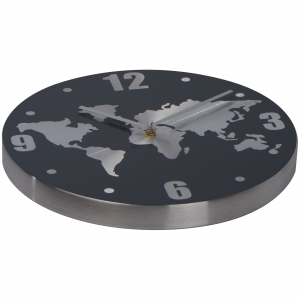 Artikel-Nr: MCM4074407Wanduhr aus Aluminium mit Weltkarte im Hintergrund. Diese Uhr ist in jedem Raum ein Blickfang. Ihre Werbung wird auf die Uhr gelasert.