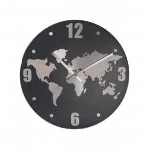 Wanduhr aus Aluminium mit Weltkarte