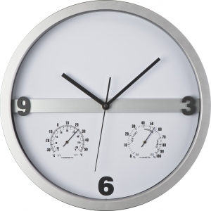 Wanduhr mit Hygro - und Thermometer, halbes Display bedruckbar ERICH