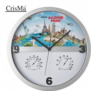 Wanduhr mit Hygro - und Thermometer, halbes Display bedruckbar