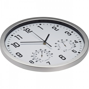 Artikel-Nr: MCM4123806Schick und schlicht - somit ideal für Ihre Werbung ist diese Wanduhr mit Hygrometer und Thermometer. Ihre Werbung wird auf dem Werbeplättchen unterhalb der Zwölf angebracht.