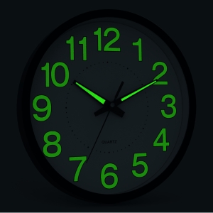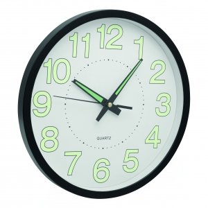 Artikel-Nr: INP56-0401520Wanduhr SUN: mit Quartz-Uhrwerk, analoger Zeitanzeige, phosphoreszierenden Ziffern und Zeigern (leuchten in der Nacht), batteriebetrieben (1x AA Batterien nicht enthalten)