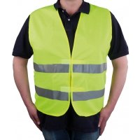 gelb, EN ISO 20471:2013, 100% Polyester, Klettverschluss, 2 reflektierende Streifen, Größe 4XL ca. 72 x 74 cm, verpackt im wiederverschließbaren Polybeutel, Einleger 7-sprachig, 100 Stück im Karton