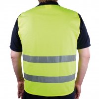 gelb, EN ISO 20471:2013, 100% Polyester, Klettverschluss, 2 reflektierende Streifen, Größe 2XL/3XL ca. 67 x 72 cm, verpackt im wiederverschließbaren Polybeutel, Einleger 7-sprachig, 100 Stück im Karton
