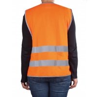 Artikel-Nr: D533AL1246orange, EN ISO 20471:2013, 100% Polyester, Klettverschluss, 2 reflektierende Streifen, reflektierender Saum an der kompletten Weste, unisize, ca. 68 x 66 cm, verpackt im wiederverschließbaren Polybeutel, Einleger 7-sprachig, 100 Stück im Karton