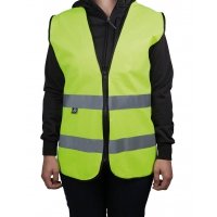 Artikel-Nr: D533AL1249gelb, EN ISO 20471:2013, 100% Polyester, Reißverschluss, 2 reflektierende Streifen, schwarzer Saum, 2XL/3XL Long Version ca. 65 x 76 cm, verpackt im wiederverschließbaren Polybeutel, Einleger 7-sprachig, 100 Stück im Karton