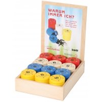 Artikel-Nr: 375108863Zwölf Warum immer ich? im Holzdisplay: je 3 x natur, gelb, blau und rot (siehe Artikelnummer 108864, 108865, 108866, 108867!) Beliebtes Würfelspiel für zwei und mehr Personen jeden Alters. In handlicher Version zum Überall-hin-Mitnehmen und Spaß haben! So geht's: Alle Holzstäbe werden an die Spieler verteilt. Würfelnd werden die Felder des Spielbretts entsprechend der Augenzahlen besetzt. Bei 6 fällt das Stäbchen durch. Ist ein Feld bereits besetzt, muss der Spieler den Stab nehmen, und der Nächste ist dran. Wer keine Holzstäbe mehr hat, ist Sieger. Und bald werden Sie wissen, warum das Spiel Warum immer ich? heißt! Achtung! Nicht geeignet für Kinder unter 36 Monaten.