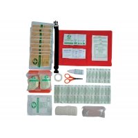 Artikel-Nr: 688PLR162Erste Hilfe Set, wasserfest in Nylon 75D mit PVC Beschichtung. Inhalt: Schere, 4 Paar Latexhandschuhe, 10 Pflaster 10x6cm, 10 Pflaster 7,2x1,9cm, 10Pflaster4x1cm, 1 Rolle Sicherungsklebeband, 1 flexible Bandage 10cmx4,5m, 1 Baumwollverband 10cmx4,5m, 10ml Wasserstoffperoxid, 3 Kompressen 5x5cm, 1 fombares Stilllagekissen, 11x11cm, 5 sterile Kompressen 7.5x7.5cm, 5 Alkoholkissen, 5 antiseptische Tupfer.