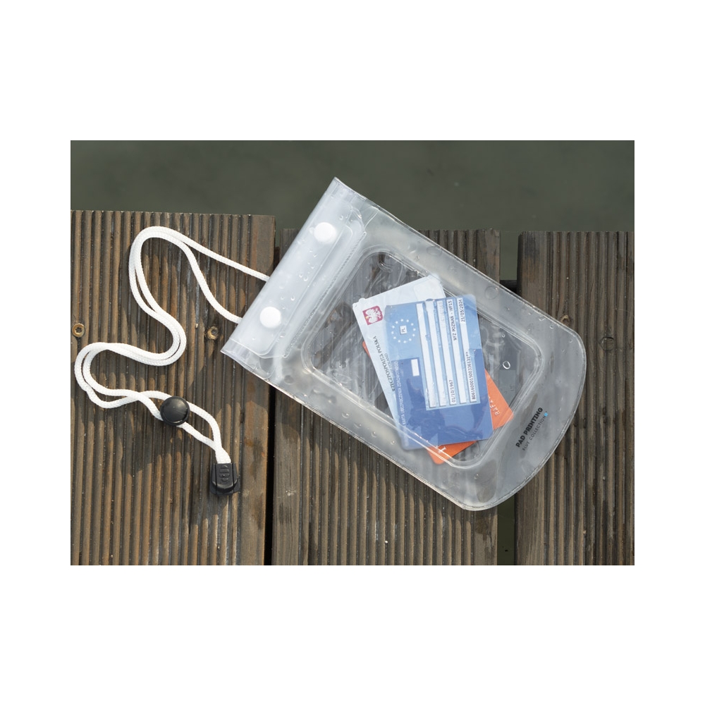 Artikel-Nr: ARD20511-19Das wasserdichte Etui von FALLA schützt Ihre Sachen vor Wasser. Sie hat ein transparentes Fenster für die Nutzung eines Touchscreen-Handys und eine Kordel zum Aufhängen des Etuis um Ihren Hals.