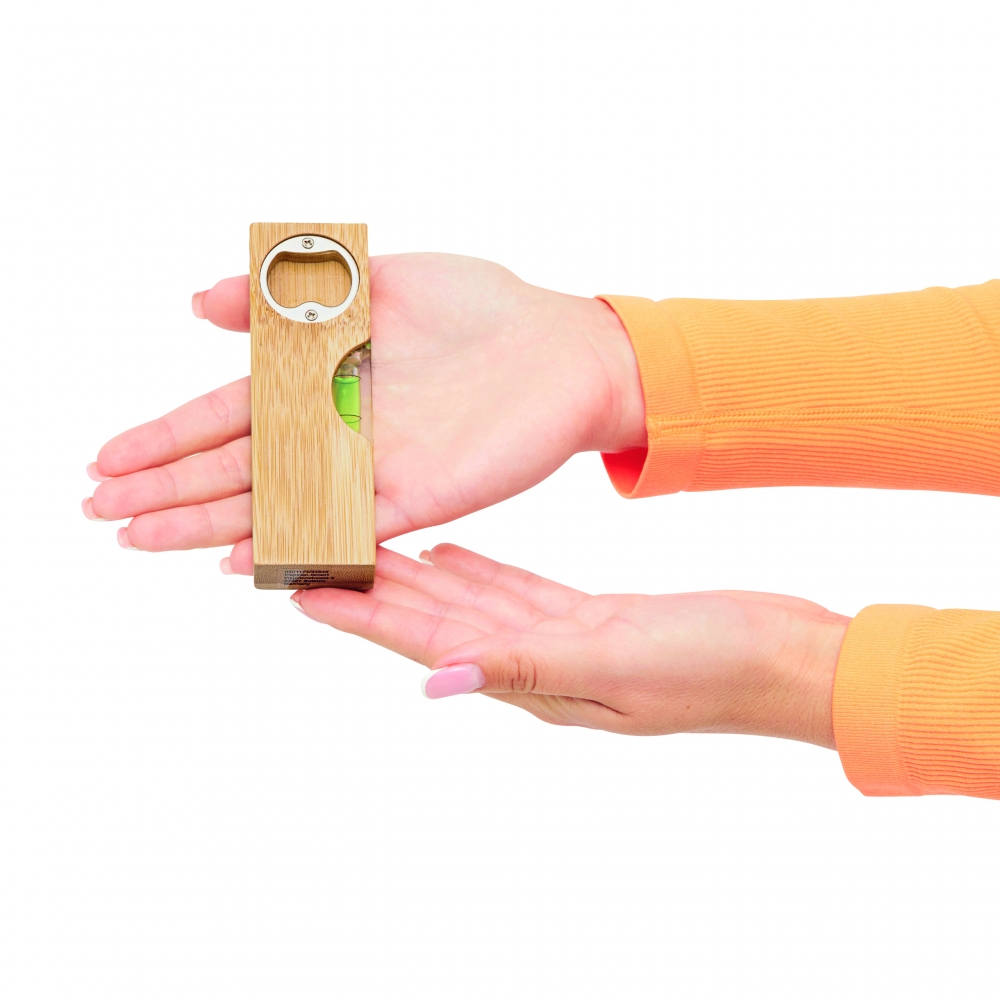Artikel-Nr: INP56-0301174Wasserwaage BAMBOO TOOL: mit integriertem Flaschenöffner, aus Bambus, in Box