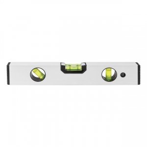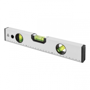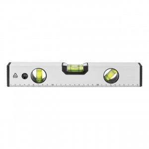 Artikel-Nr: AND800147-01Magnetische Wasserwaage aus recyceltem Aluminium mit dreifacher Libelle (horizontal, vertikal und 45°) und 30 cm Lineal.