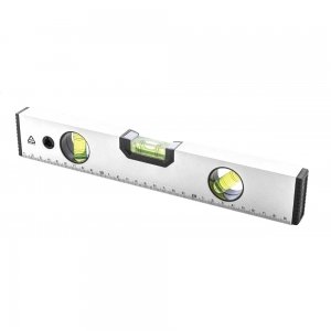 Artikel-Nr: AND800147-01Magnetische Wasserwaage aus recyceltem Aluminium mit dreifacher Libelle (horizontal, vertikal und 45°) und 30 cm Lineal.
