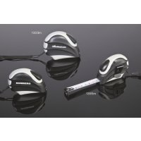 Preisgünstiges Qualitätsmaßband im modernen Wellendesign. Schwarzes ABS-Gehäuse mit grauer Gummierung für optimales Handling. Schwarzer Stopper und Handschlaufe sowie verchromter Gürtelclip runden die Optik ab.