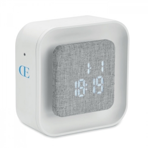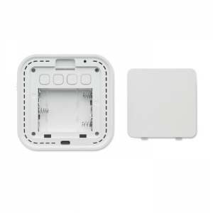 Artikel-Nr: OCBMO2299-06LED-Wecker aus RPET und recyceltem ABS. Mit einstellbarem Hintergrundlicht. Anzeige des Kalenderjahres nur im Alarmmodus. Exkl. 3 AA-Batterien.