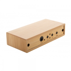 Artikel-Nr: AND810467Multifunktionswecker im Bambusgehäuse mit LED-Anzeige, Thermometer und integriertem Wireless-Charger (10 W). Inkl. USB-Kabel.