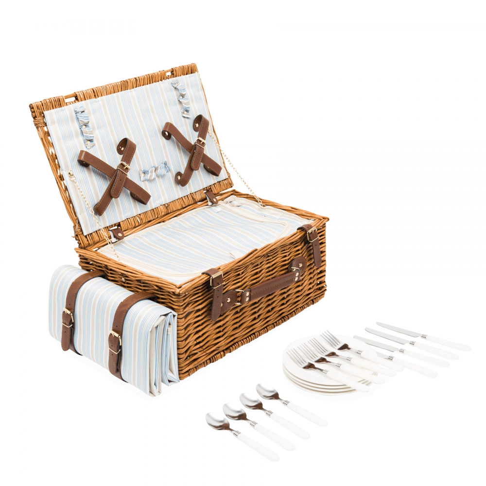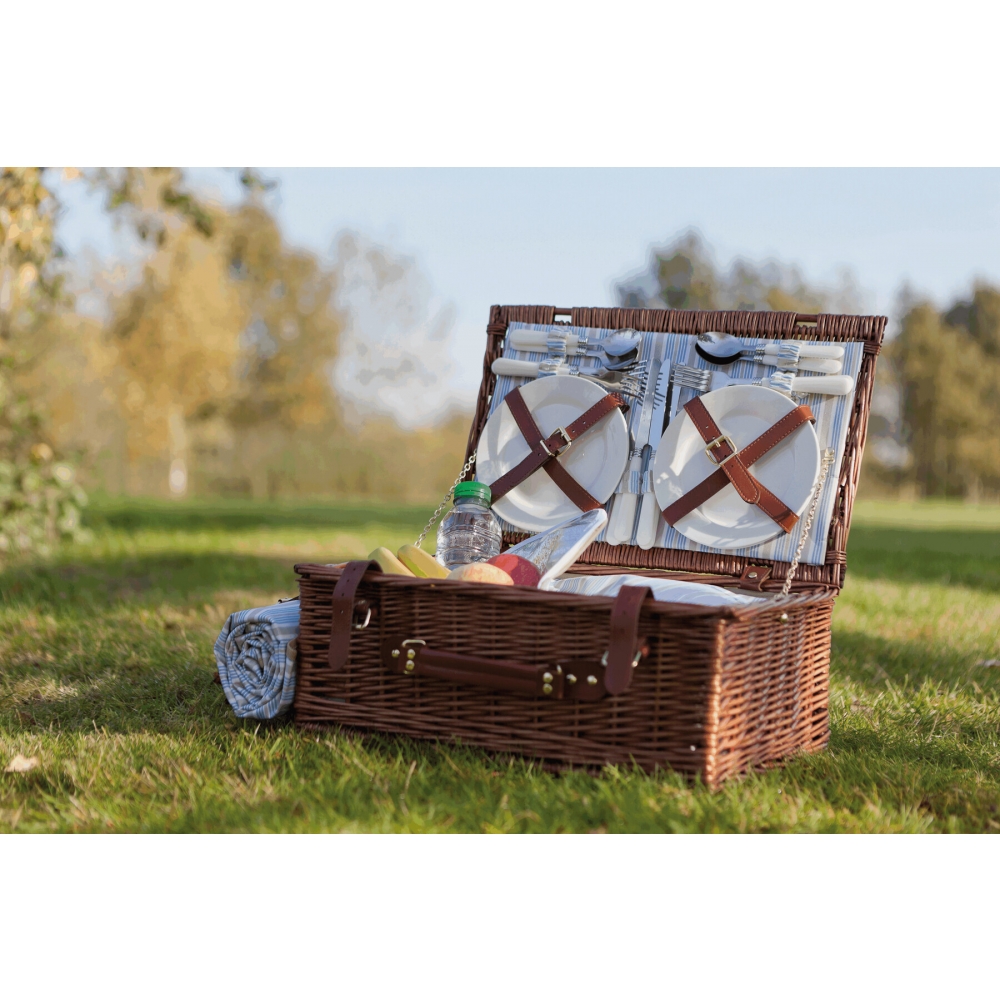 Artikel-Nr: INP56-0604034Weiden-Picknickkorb MADISON PARK für 4 Personen: isoliertes Reißverschluss-Kühlfach, inkl. Edelstahl-Besteck mit Kunststoffgriffen, Keramiktellern (mit Befestigungsgurten gesichert) und Picknickdecke mit beschichteter, schmutzabweisender Ober- und Unterseite, praktischer Tragegriff außen