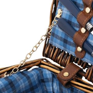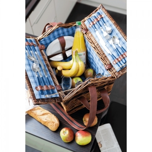 Artikel-Nr: INP56-0604032Weiden-Picknickkorb SUMMERTIME für 4 Personen: inkl. Edelstahl-Besteck mit Kunststoffgriffen, Keramikteller, Kunststoff-Weingläser, innen mit Befestigungsgurten, außen seitliche Tragegriffe, Schultergurt und Drehverschluss