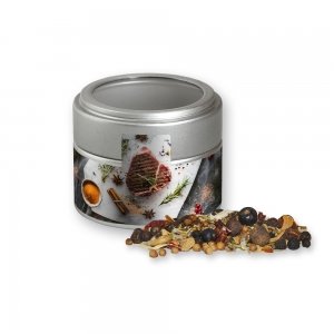 Weihnachts Gewürzmischung Wild, ca. 50g, Metalldose Mini mit Sichtfenster silber