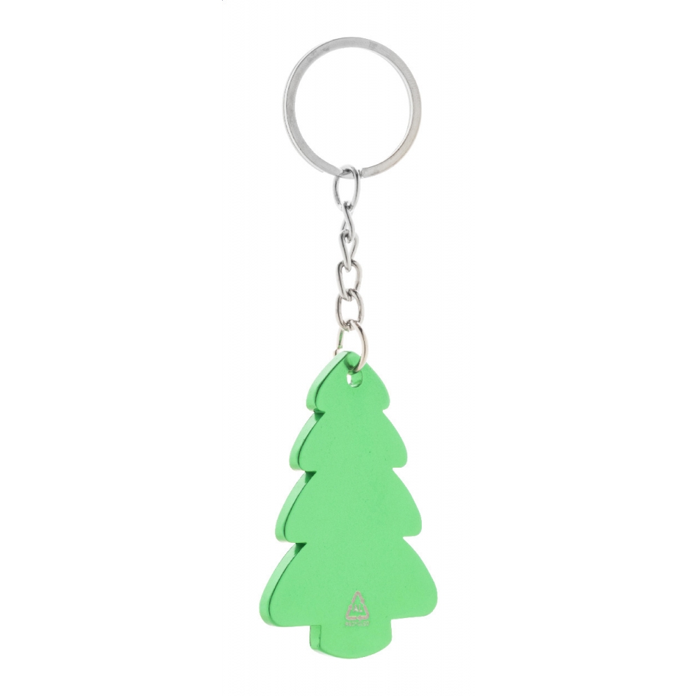 Artikel-Nr: AND800120-07Schlüsselanhänger aus recyceltem Aluminium in Weihnachtsbaumform mit Metallring.
