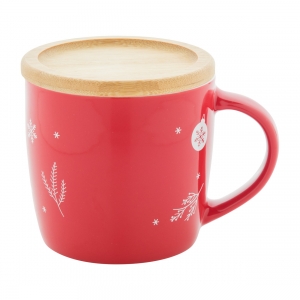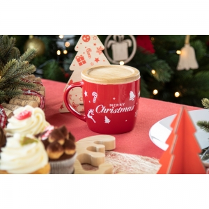 Artikel-Nr: AND800538-05Hochwertige Keramiktasse mit Bambusuntersetzer und Weihnachtsmotiv. Füllmenge: 370 ml. Einzeln in Kraftpapierbox.